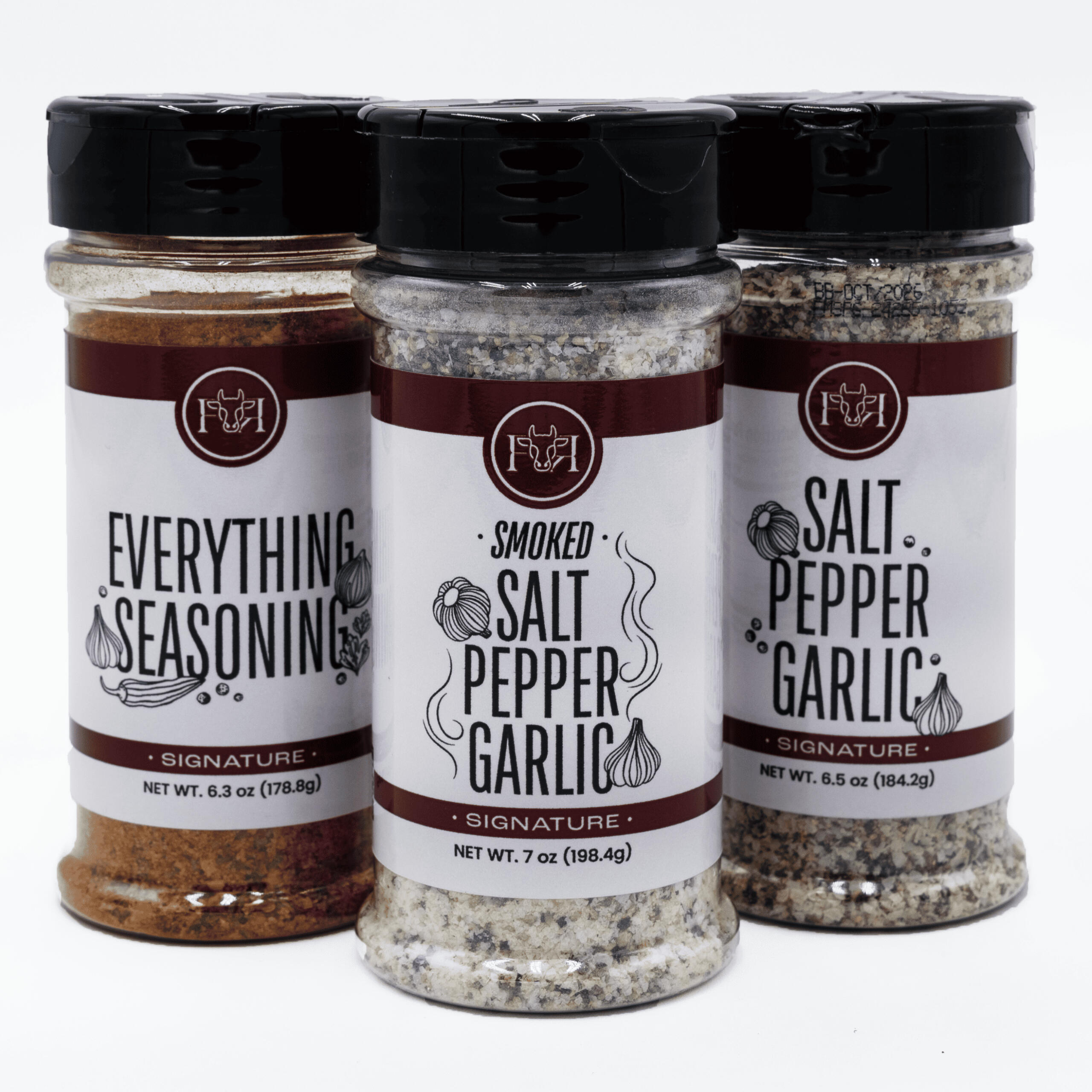 BBQ Starter Set - Smoked Salt Pepper Garlic & Everything Seasoning2-Pack Bottles for $30.99